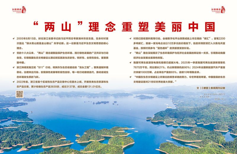 作为习近平生态文明思想的核心理念,“两山”理念给出了中国方案。它不仅深刻重塑了中国经济社会全面发展的路径,更超越了地域和时代局限,为全球可持续发展贡献东方智慧。