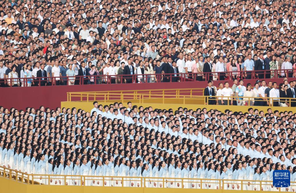 9月3日,纪念中国人民抗日战争暨世界反法西斯战争胜利80周年大会在北京天安门广场隆重举行。这是合唱团在演唱。
