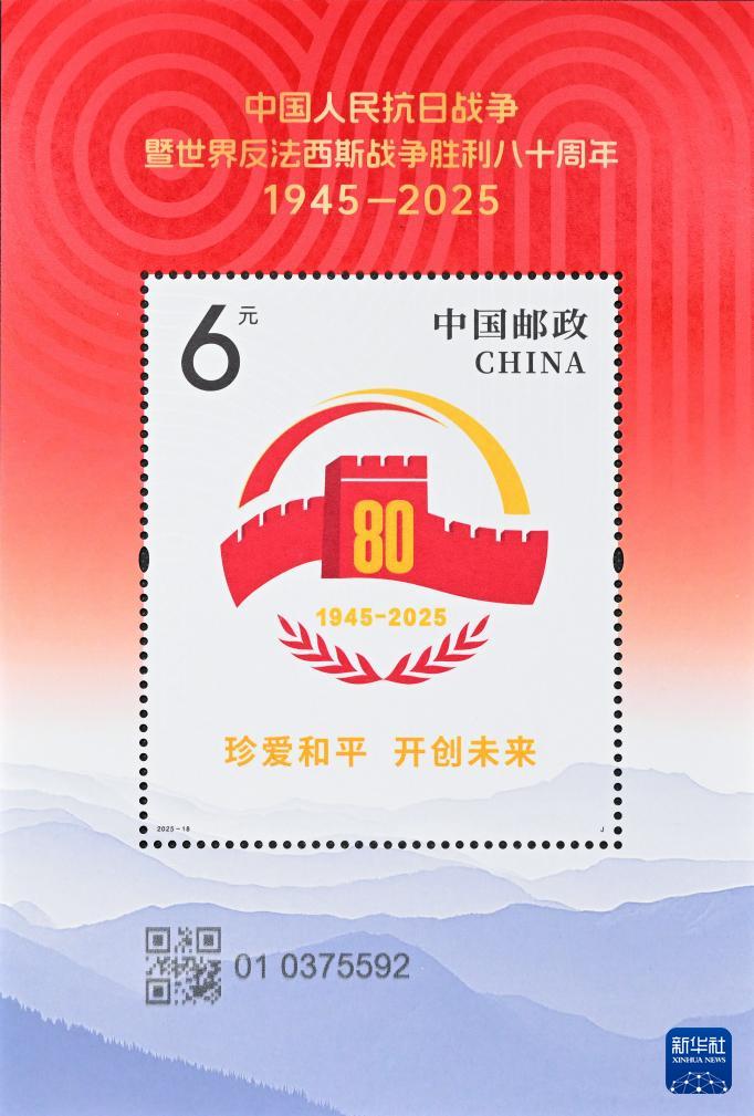 这是9月3日拍摄的《中国人民抗日战争暨世界反法西斯战争胜利八十周年》纪念邮票小型张。