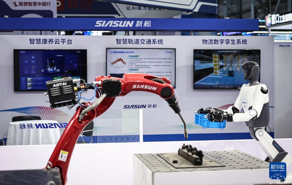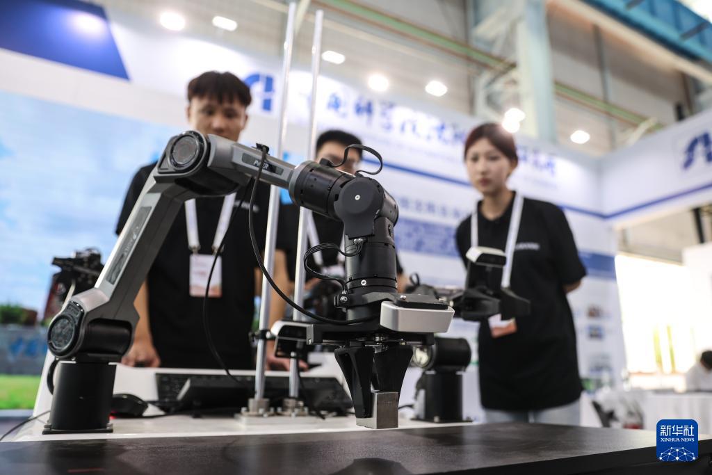 9月6日在2025全球工业互联网大会展览区展示的工业机器人。