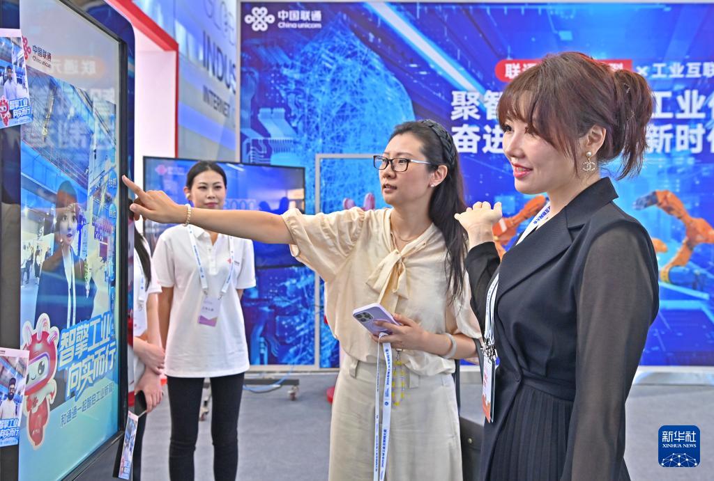 9月6日,观众在2025全球工业互联网大会展览区参观。