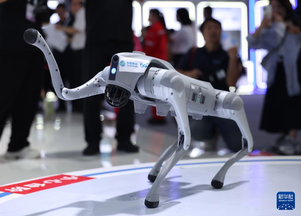 这是9月6日在2025全球工业互联网大会展览区展示的机器狗。