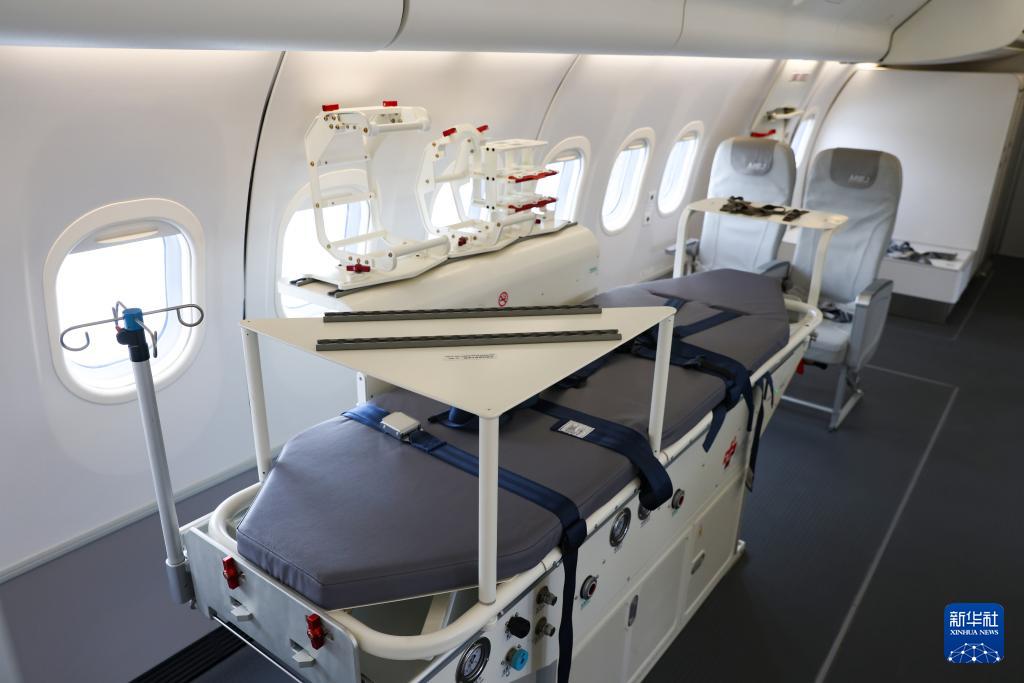据悉,C909医疗机最大设计商载10吨,标准航程可达3700公里,具备高高原机场起降能力。舱内布局可根据不同救援需求灵活改装,能够满足医疗救援队伍出行、边远地区医疗救助、伤病员转运等多场景应用。