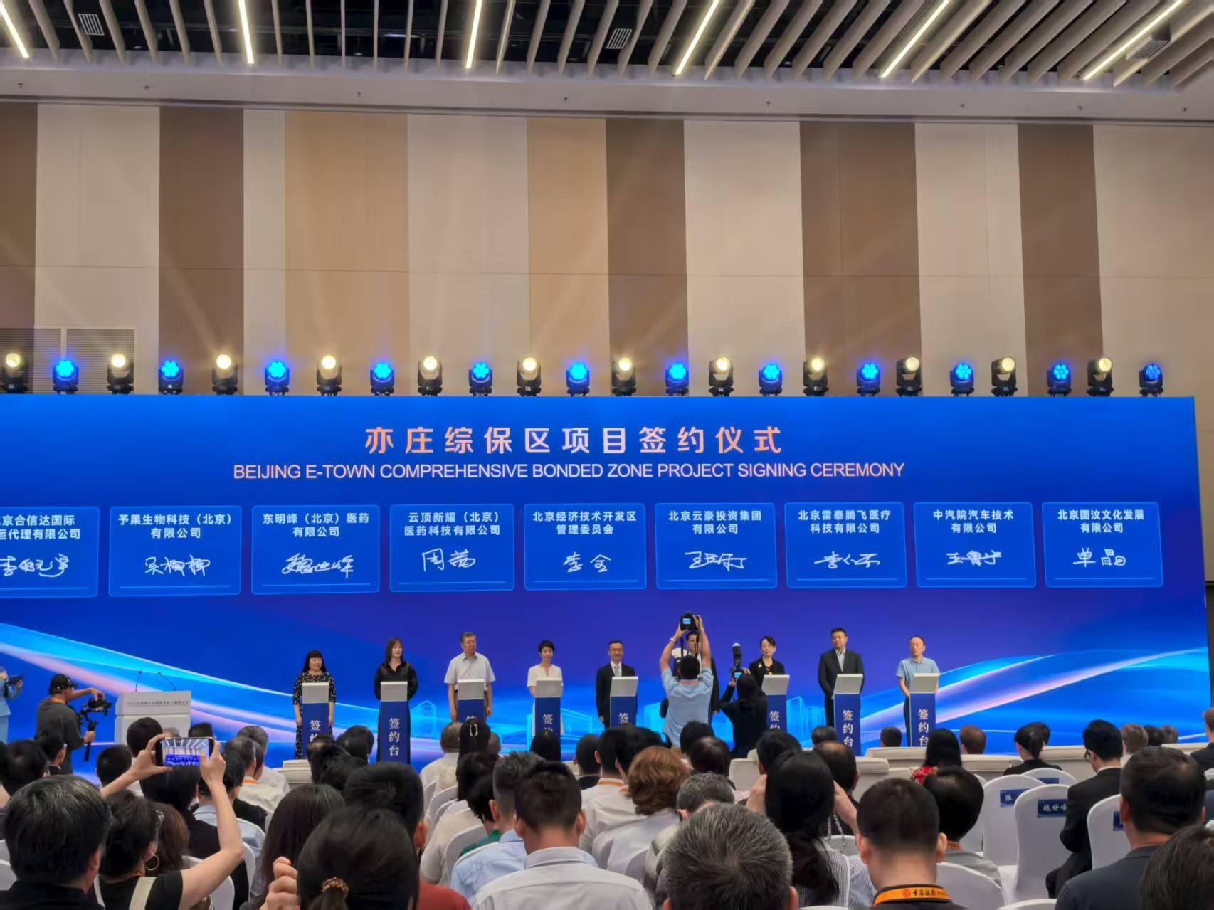 在现场嘉宾见证下,亦庄综保区与云豪投资、云顶新耀、雷泰医疗等8家企业完成项目签约,并与北京仲裁委员会、中国报关协会、首都知识产权服务业协会、中国银行北京市分行4家机构达成生态伙伴合作。