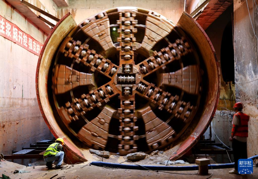 穗莞深城际前皇全开段首台接收的盾构机“广兴11号”接收井现场(9月16日摄)。