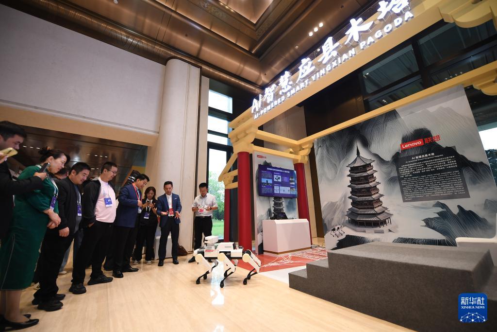 9月17日,与会嘉宾在论坛的文化遗产数字化精品项目展上了解AI智慧应县木塔数字化保护项目。