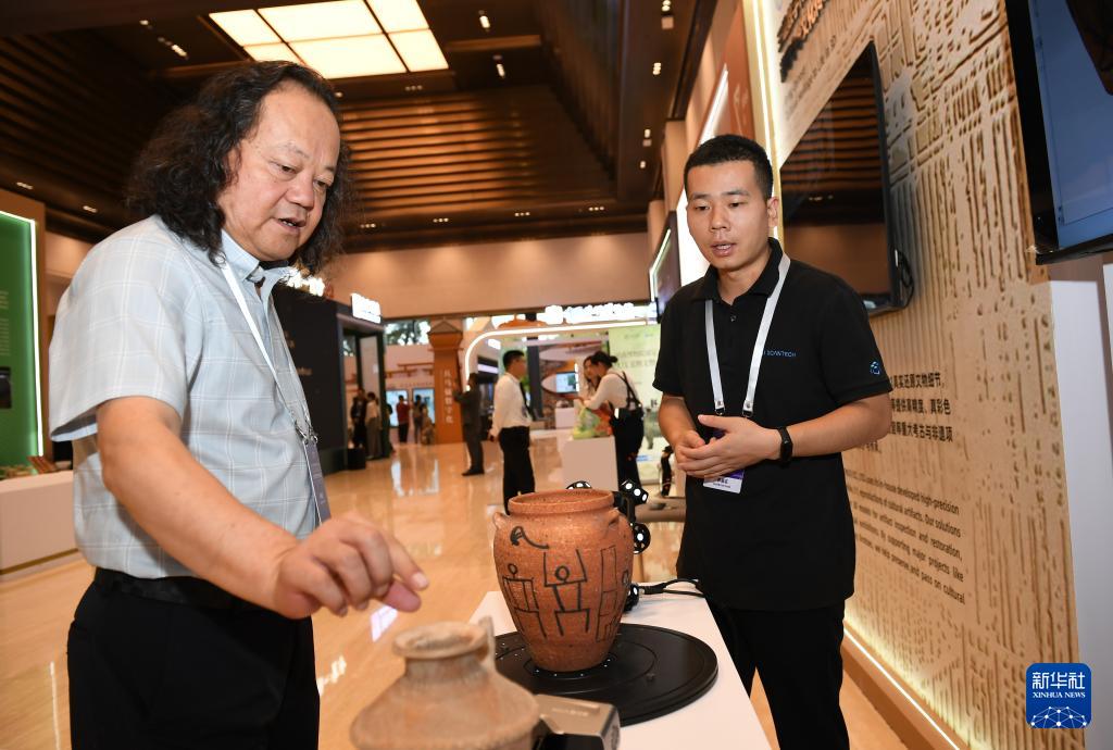 9月17日,与会嘉宾在论坛的文化遗产数字化精品项目展上了解思看科技高精度激光三维扫描技术。