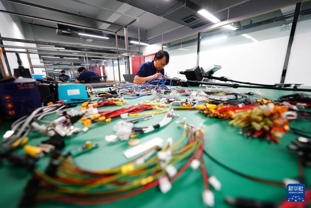 9月20日,河北省邢台市柏乡县一家机器人科技公司的员工在组装产品零部件。