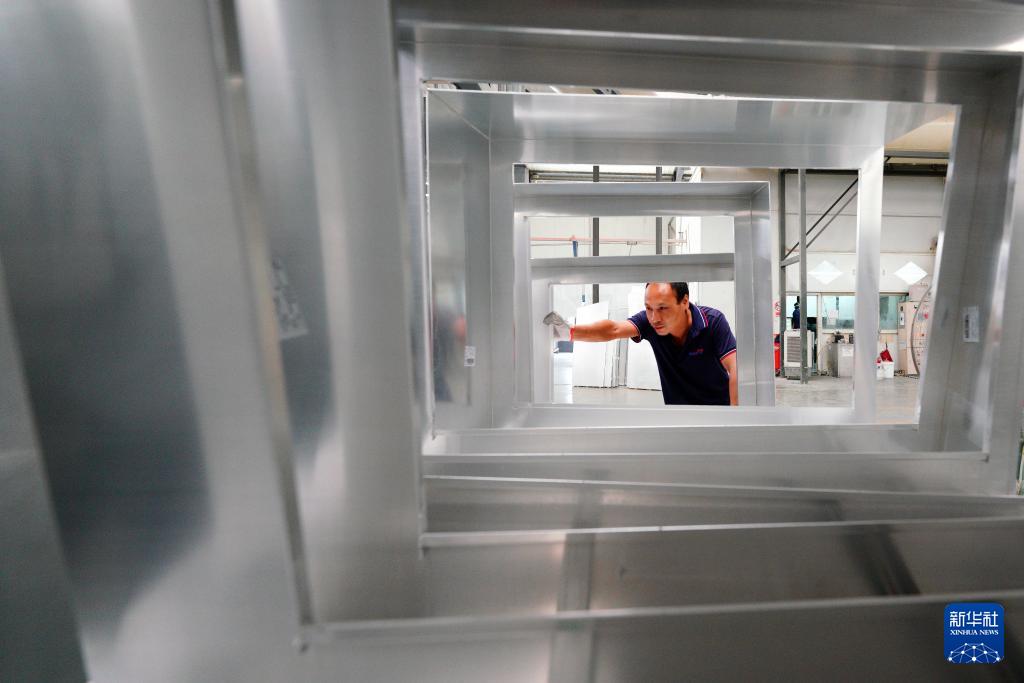 9月20日,河北省邢台市柏乡县一家新型建材生产企业的员工在加工铝板。