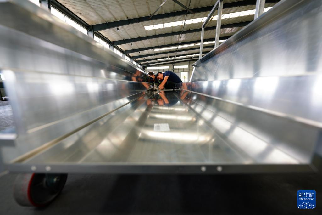 6月20日,河北省邢台市柏乡县一家工矿机械制造企业的员工在检测产品零部件。