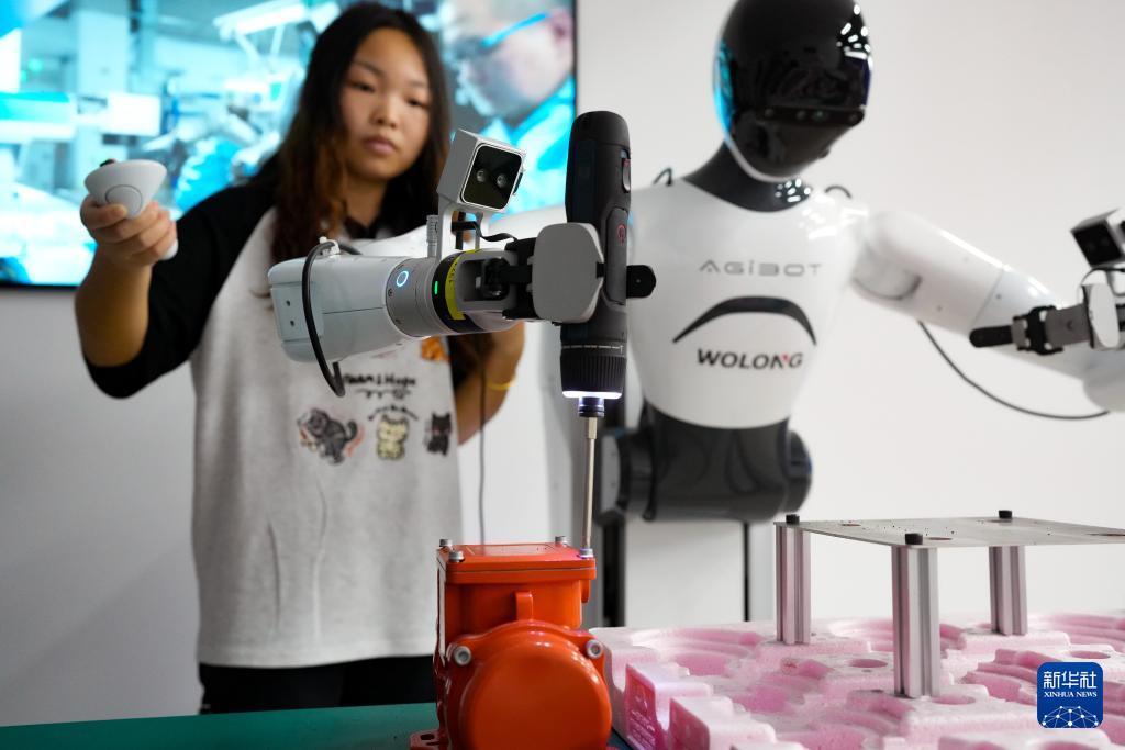 9月23日,工作人员操作机器人进行拧螺丝作业数据采集。
