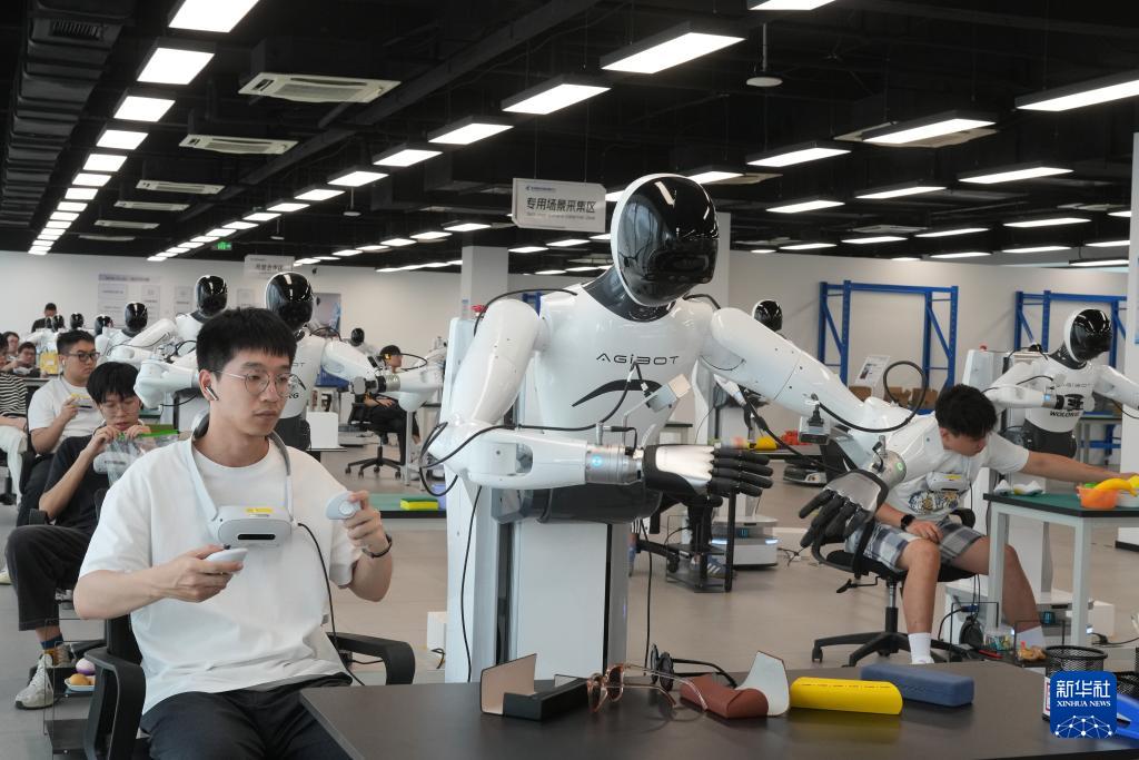 9月23日,工作人员操作机器人进行不同场景作业的数据采集。