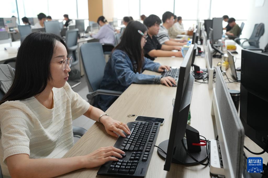 9月23日,工作人员在数据审核区审核采集的机器人作业数据。