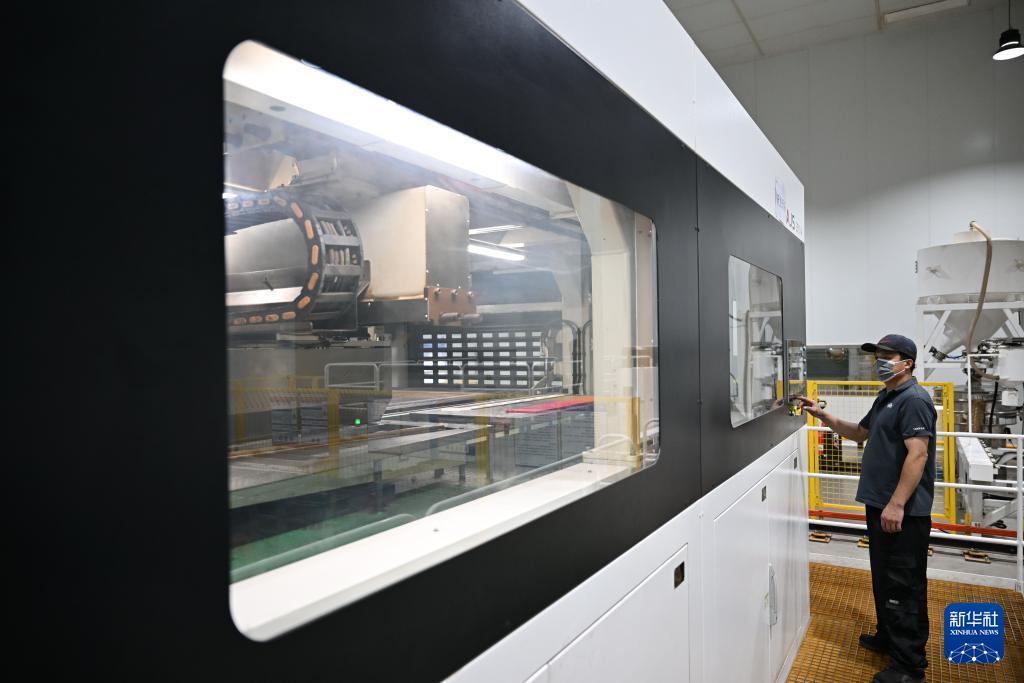 9月24日,泊头市亚奇铸业有限公司工人在操作3D打印设备制造砂芯。