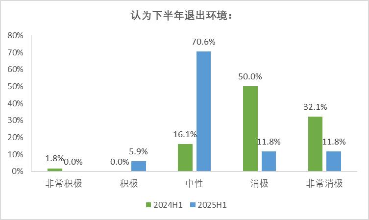近四成现场投资机构对下半年的募资环境的持积极态度,仅两成左右现场投资机构对下半年的投资、退出环境持消极态度。