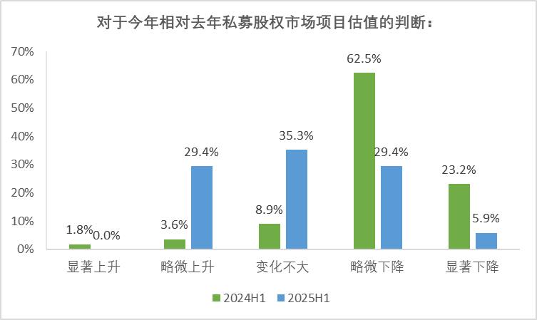 相较于去年私募股权市场项目估值的判断,六成以上现场投资机构认为稳中有升。