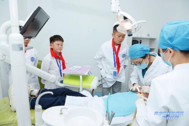 谋定而后动,9月25日,青少年科技素养提升计划的最新一期“科技燃梦·科技型企业开放日”活动走进北大医疗集团。55名来自内蒙古、河南、云南、贵州、青海、江苏的项目校师生,来到北京大学国际医院参观学习。沉浸式、体验型的科普活动,让青少年化身“科学小医生”,教科书上略显枯燥的护眼知识,被巧妙地转化成了一系列生动有趣的互动体验;在口腔健康站,一个直观展示含糖饮料危害的趣味实验让孩子们惊呼不已,拿起专业器械扮演“小小牙医”,则让孩子们在欢声笑语中理解口腔保护的重要性;在心理健康坊,一场关于“情绪信号灯”的互动课堂,温柔地教会孩子们识别与接纳自己的情绪,并通过简单的正念呼吸练习,学习实用的放松技巧;聆听医生们的从医故事,感知她们无畏艰辛守护生命的坚守……在“探索-认知-实践”的学习闭环中,培养青少年们用科学的眼光探索世界,用温暖的心灵关爱他人,点燃了青少年们医学梦想的火种!