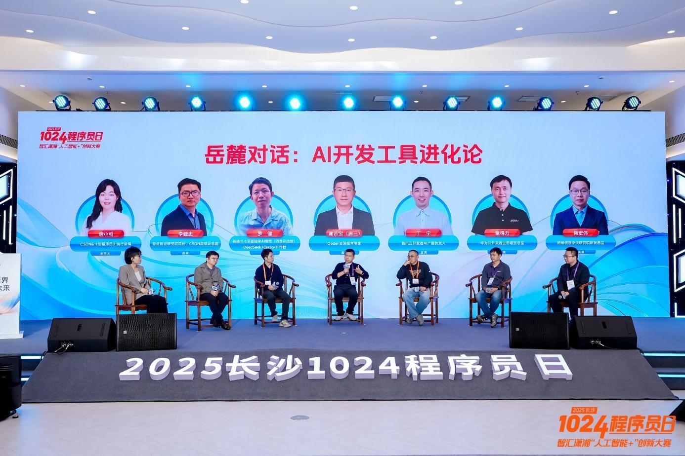 在岳麓对话环节,李建忠、畅销书《零基础学AI编程(项目实战版)DeepSeek+Cursor》作者罗健、谢吉宝(唐三)、腾讯云开发者AI产品负责人丁宁、华为云开发者生态运营总监童得力和拓维信息中央研究院研发总监蒋宏伟等专家学者,以“AI开发工具进化论”为主题展开深入交流,从技术演进、生态构建与实战应用等多重视角,共同探讨了AI开发工具的未来发展路径。