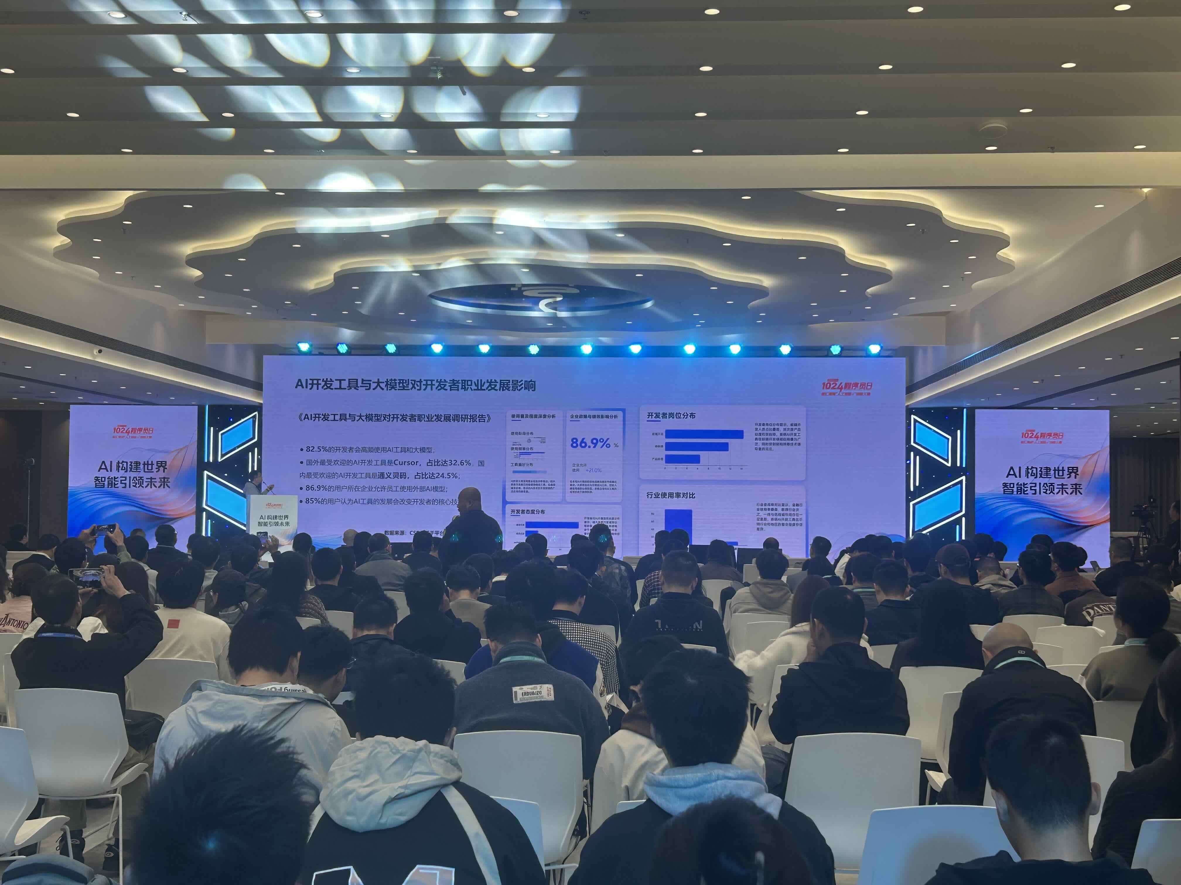 长沙开发者科技有限公司创始人、董事长,开放原子开源基金会理事、奇点智能研究院理事长蒋涛在开幕式上提及,AI已深入软件研发本身,95.5%的开发者几乎已经离不开AI。未来,程序员将不只是写代码,而是构建万物。基于AI能力对开发者的深刻价值,今年1024程序员日特别设置了九场AI构建者大会专场活动,为开发者搭建直接动手实操AI工具的平台,帮助开发者成为AI时代的构建者。