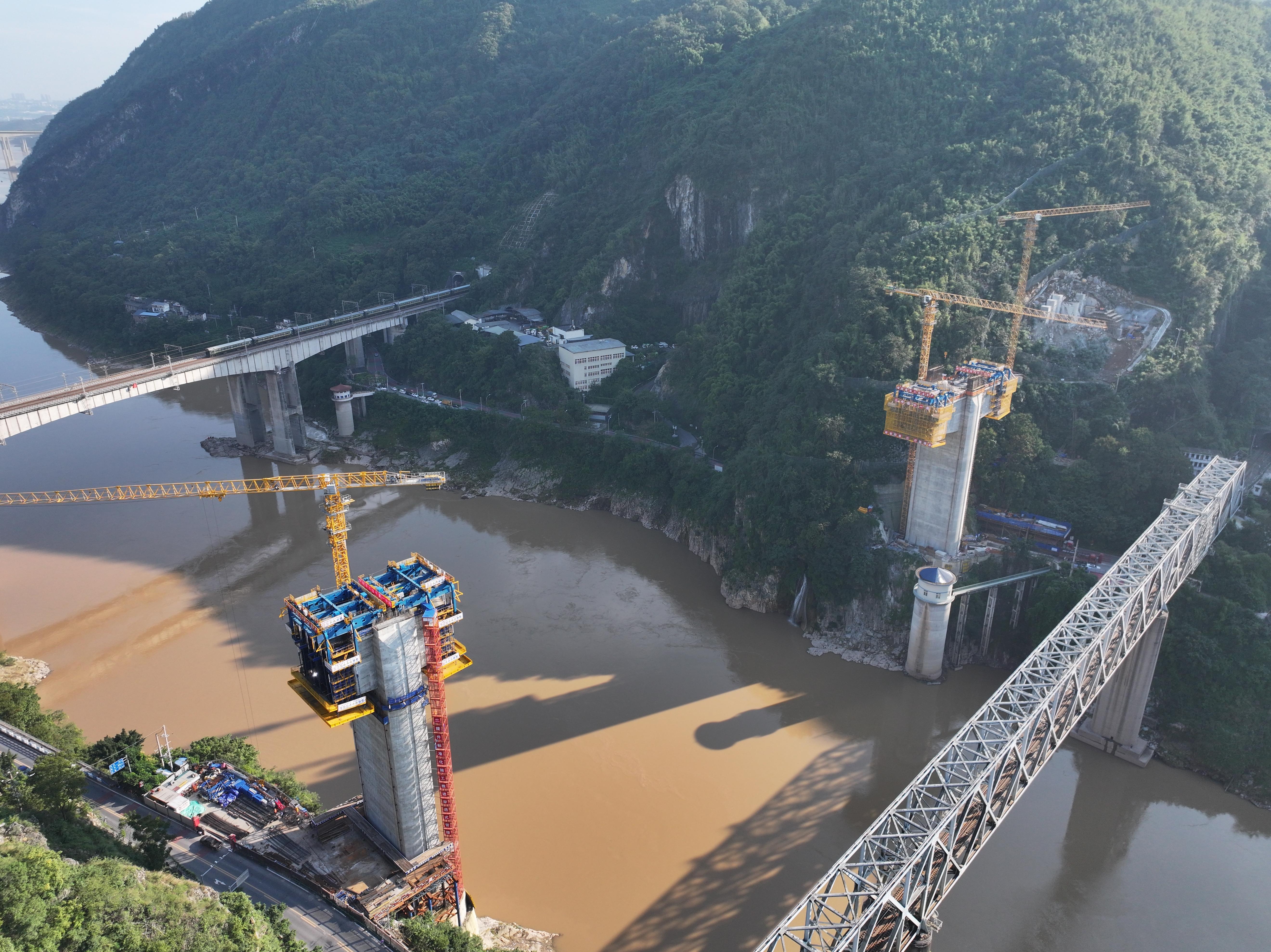 在智慧悬臂造桥机的助力下,西渝高铁北碚天府嘉陵江特大桥悬臂施工工期缩短20%,现场作业人员减少20%,人工成本显著降低,项目实体质量一次验收合格率达到100%。截至目前,西渝高铁北碚天府嘉陵江特大桥14号主墩已完成造桥机安装,15号主墩已完成4号节段浇筑。