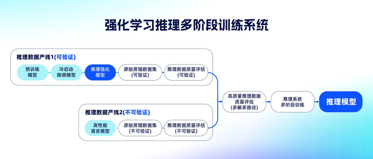构建慢思考能力的前提,是拥有高质量推理训练数据。为此,夸克构建了“双数据产线+双奖励机制”的工程体系。一方面,将医学数据划分为“可验证”和“不可验证”两类,分别对应诊断类任务和健康建议类任务;另一方面,在训练方法上引入“过程奖励模型”和“结果奖励模型”,分别评估模型推理链的合理性与最终结论的准确性,显著提升模型的临床可解释性和推理一致性。
