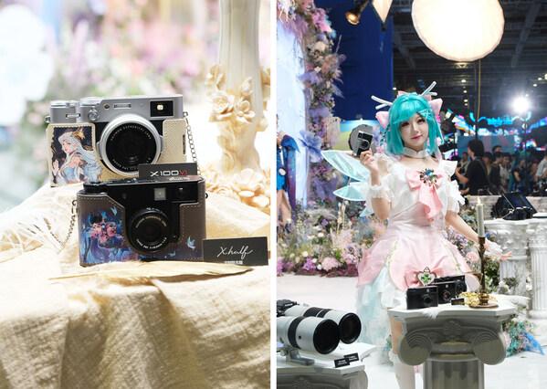 富士胶片展台特别设置了《王者荣耀》主题拍照区,通过X half的"双重曝光"、"2 in 1"等个性化拍摄功能,玩家可与游戏场景"同框",创造出"游戏元素+现实场景"的创意自由组合,留存专属于自己的"王者记忆"。