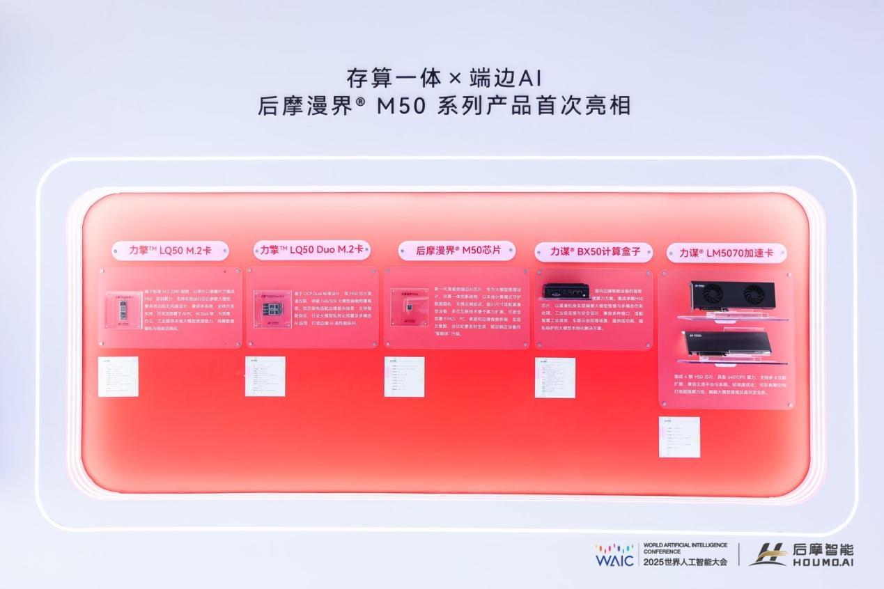 7月26日,2025年世界人工智能大会(WAIC 2025)在上海世博展览馆开幕,大会以“智能时代同球共济”为主题,汇聚全球人工智能领域的顶尖企业、专家学者与行业精英。作为端边大模型 AI芯片的领跑者,后摩智能携全新发布的端边大模型 AI芯片后摩漫界?M50 (以下简称M50 )系列产品、后摩漫界?M30 (以下简称M30 )系列产品及端边大模型应用方案亮相,全面呈现存算一体技术在端边场景的落地成效。