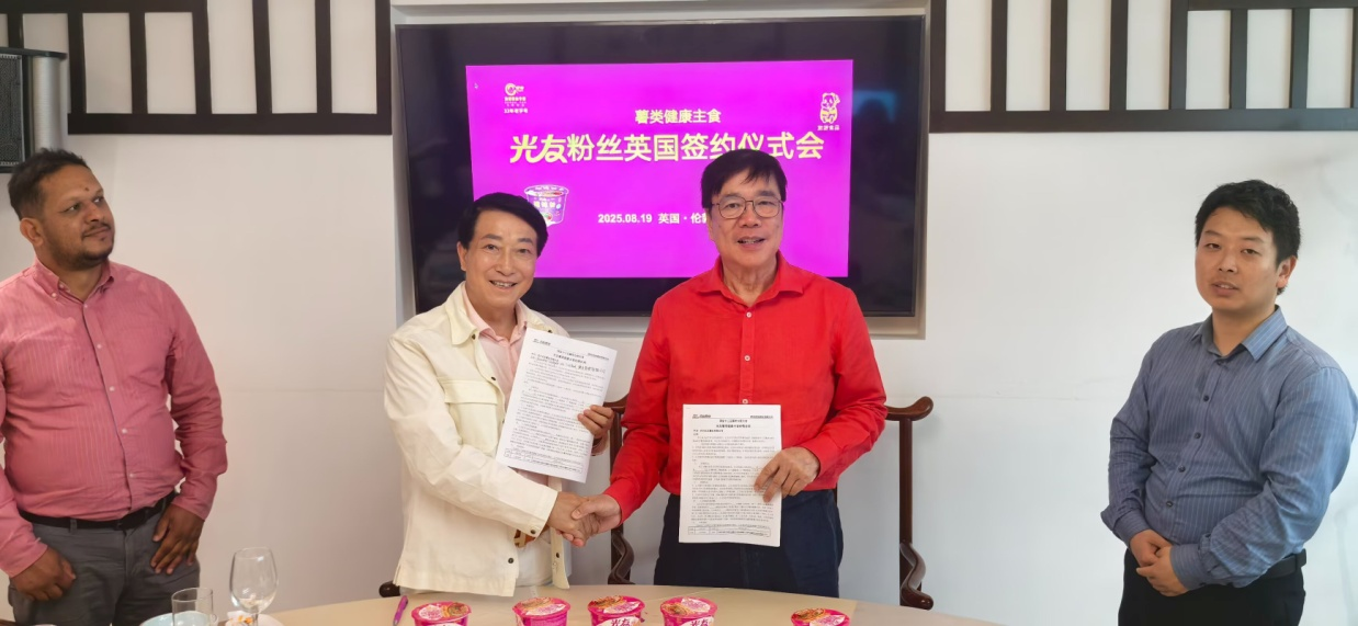 8月19日,英国 Panda Mart 集团与中国光友薯业集团在伦敦举行经销战略合作签约仪式。此次签约由西南大学英国校友会会长、英国重庆商会会长、英国重庆味道集团董事长胡敏主持,并与英国嘉宾一起见证,标志着光友薯类健康主食正式进入英国主流消费市场。