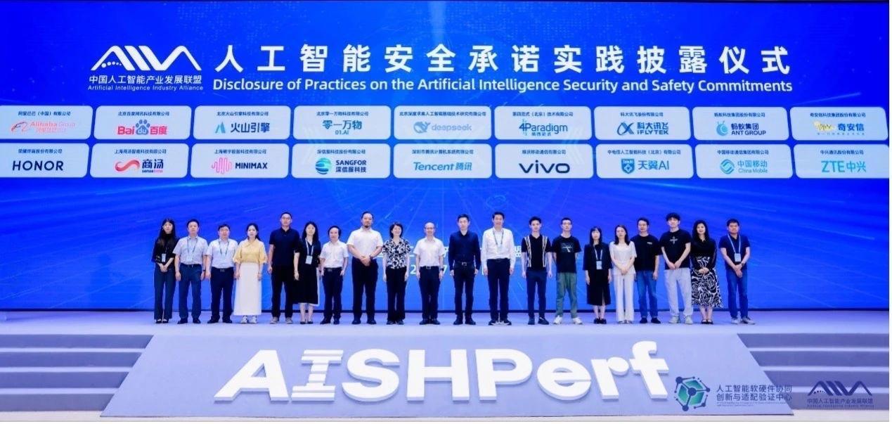 近日,在中国人工智能产业发展联盟第十五次全会上,工业和信息化部科技司、网络安全管理局相关领导与中国信息通信研究院副院长魏亮,携手零一万物、阿里巴巴、百度、火山引擎、第四范式、科大讯飞、蚂蚁集团、奇安信、荣耀、商汤、MiniMax、深信服、腾讯、vivo、中国电信、中国移动、中兴通讯等行业领军企业代表,共同发布《人工智能安全承诺》实践披露成果。