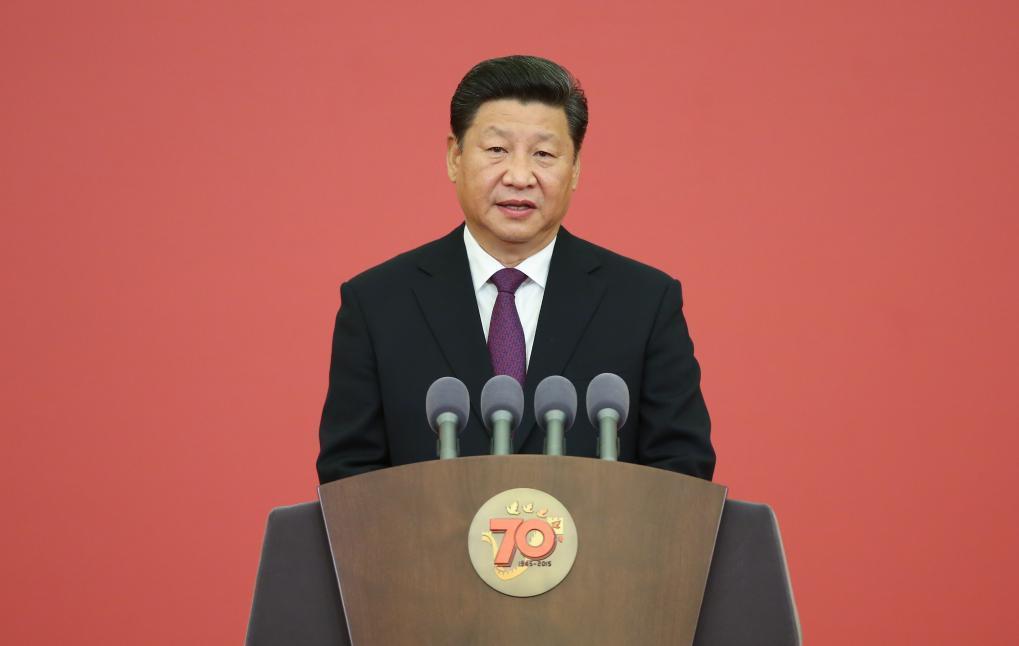 2015年9月,中国人民抗日战争胜利70周年纪念章颁发仪式在北京人民大会堂隆重举行。习近平总书记发表重要讲话。新华社记者 庞兴雷 摄
