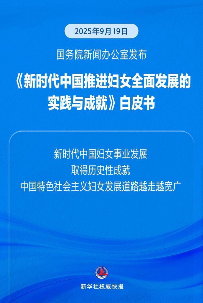 国务院新闻办公室19日发布《新时代中国推进妇女全面发展的实践与成就》白皮书。