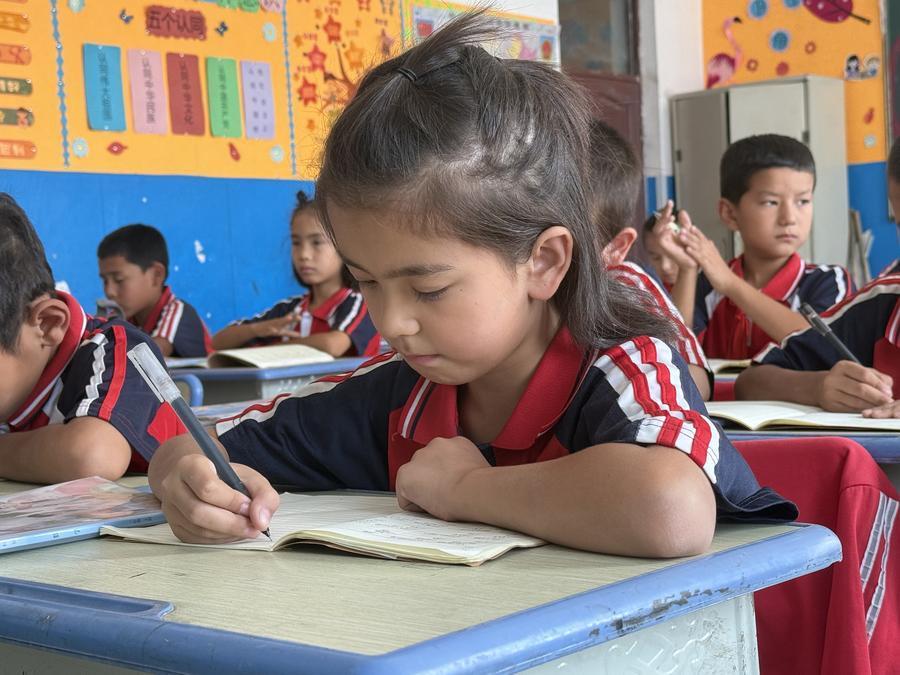 甘肃、青海、四川、广东……学校的老师来自五湖四海。乃则热的数学老师牛军平,2018年从甘肃来到新疆。“这里小孩求知的眼神把我留住。”他说,“我们要牢记总书记嘱托,加强对青少年的现代文明教育、科普教育,引导他们积极融入现代文明生活。”几年过去,老师不仅留了下来,还把家安在了这里,而“为中华民族而自豪”则成了孩子们的共识。
