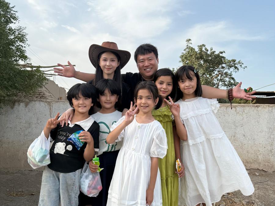 一次拍合影,70多岁的老人摸着背景布上的红墙,念叨着:“你看现在,我们住的房是北京援疆修的,孩子校服上印着‘北京援疆’,连天安门都‘来’沙漠看我们了!”