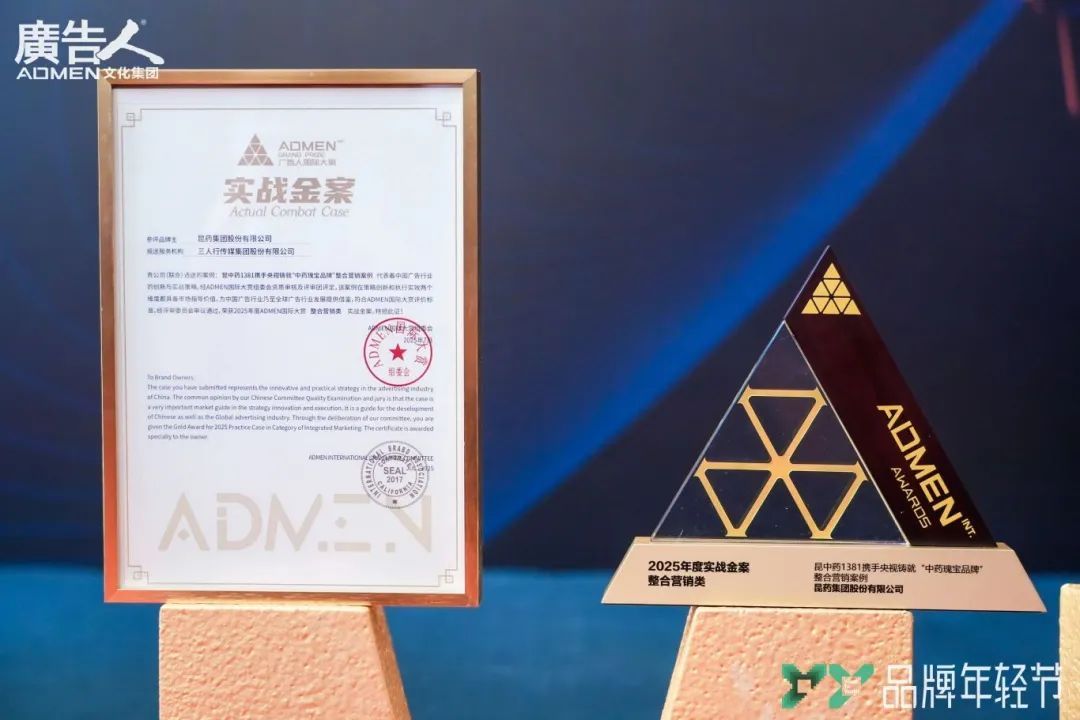 近日,以“实效创新 与智共生”为主题的2025ADMEN国际大赏在北京广播大厦举行。昆明高新区企业昆药集团股份有限公司(以下简称“昆药集团”)凭借《昆中药1381携手央视铸就“中药瑰宝品牌”整合营销案例》,从万余件参评作品中脱颖而出,荣膺“整合营销类 实战金案”殊荣,在这场聚集了500余家行业头部机构、媒体平台及品牌主的年度盛典中,充分彰显昆药集团及昆中药1381老字号药企在AI时代的创新传播实力。