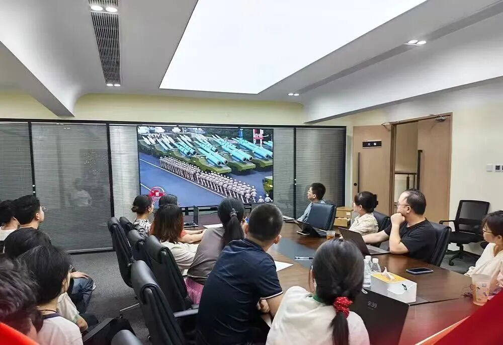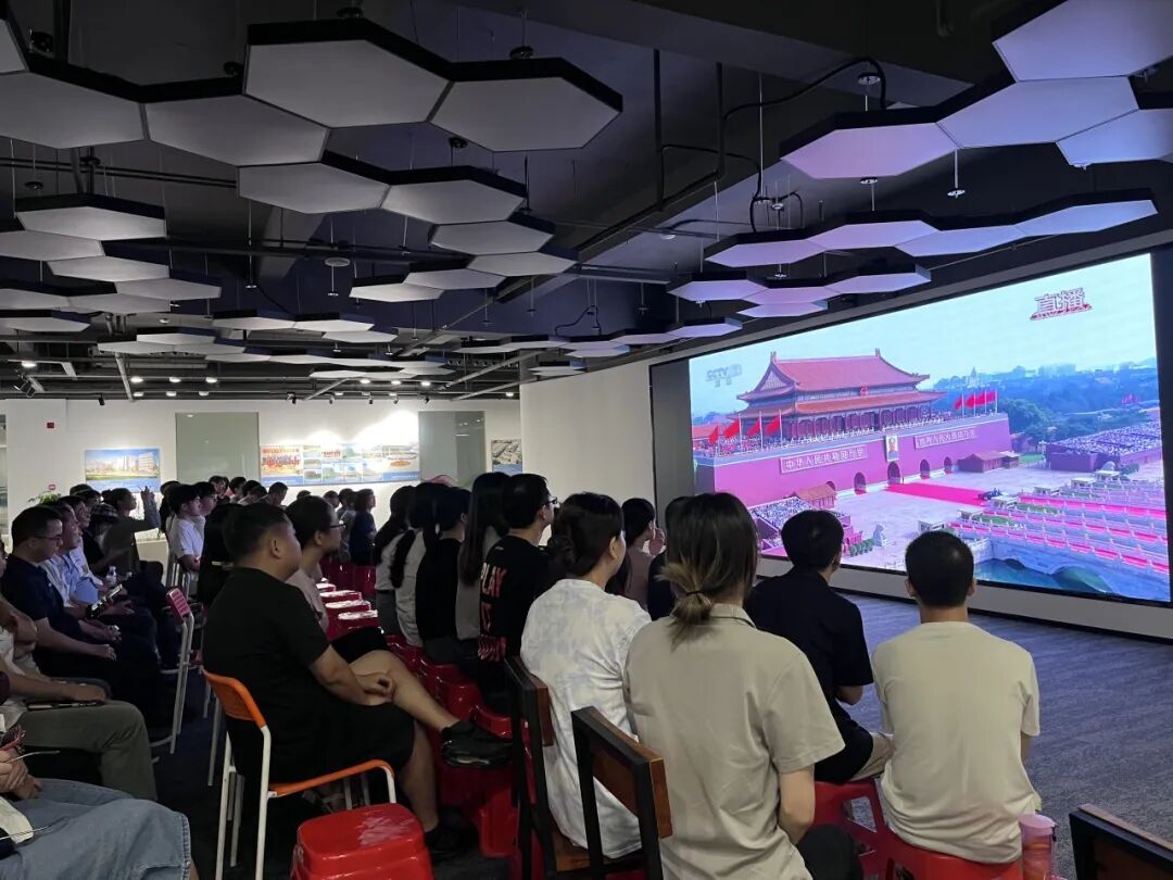 9月3日,纪念中国人民抗日战争暨世界反法西斯战争胜利80周年大会在北京天安门广场隆重举行。厦门火炬高新区组织干部职工集中收看大会实况直播,感受强国强军风采,凝聚磅礴奋进力量。