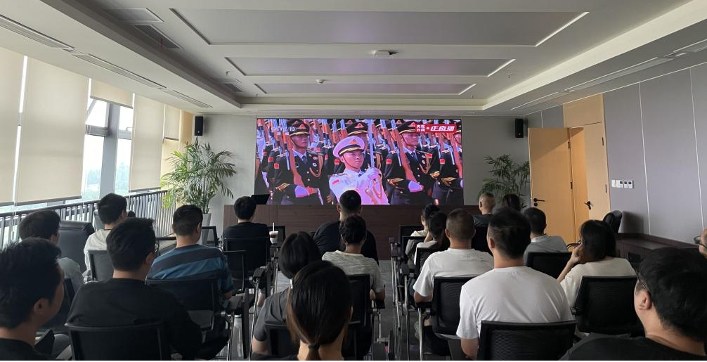 四川君和环保股份有限公司党支部组织本部及子公司220余名员工,在3个会场集体收看直播,共同回顾峥嵘岁月,缅怀革命先烈,弘扬抗战精神。当铿锵有力的步伐声响起、威武雄壮的阅兵队伍依次通过天安门时,员工们心潮澎湃、倍感震撼。大家深切感受到强国强军的辉煌成就与中华民族伟大复兴,沉浸于浓烈的爱国情怀与历史自豪感之中。大家一致认为,抗战胜利的伟大壮举不仅是中华民族的共同记忆,更是激励后人砥砺前行的力量源泉,今后将以抗战精神为指引,团结一心、锐意进取,投身于公司环保事业和科技创新工作中,为实现公司战略目标和国家绿色发展不懈努力。