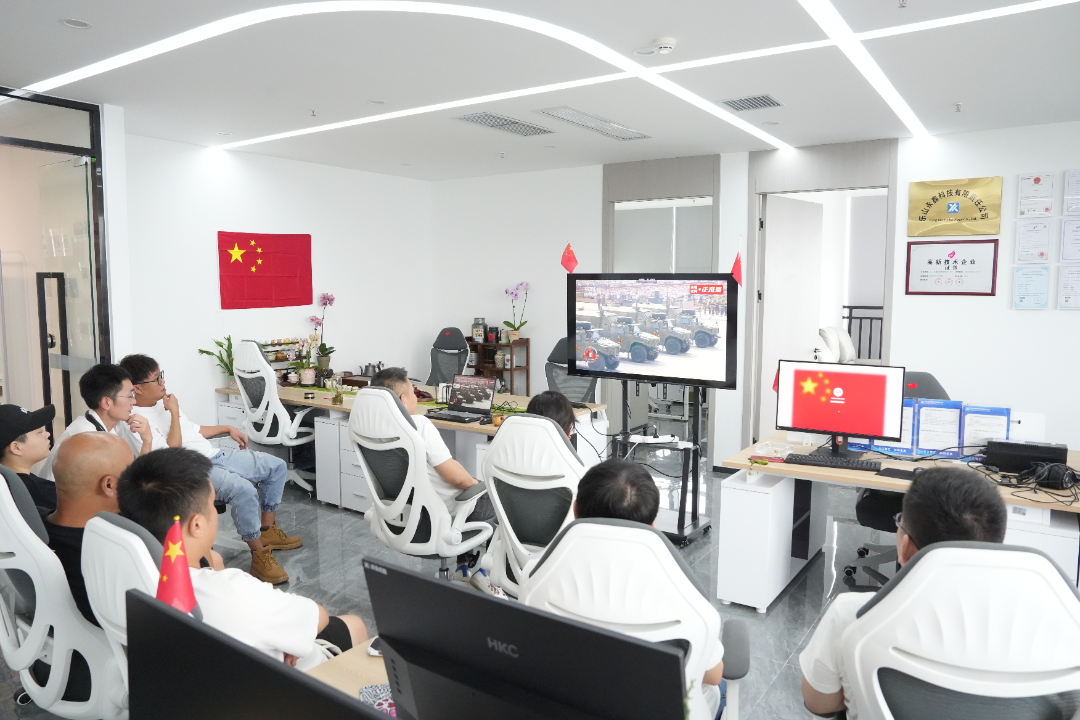 在乐山高新·创智谷(至乐汇)科技企业孵化器共享会议室,多家企业负责人齐聚一堂,共同观看大会。阅兵仪式上,当整齐划一的徒步方队迈着坚定的步伐走过天安门广场时,大家都被他们的英姿飒爽所震撼。这次阅兵不仅是一场视觉盛宴,更是一次精神的洗礼,让大家深受鼓舞和激励。