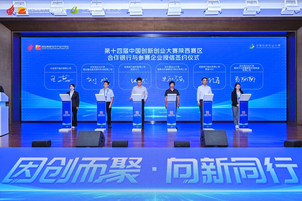 大赛不仅是“竞技场”,更是企业成长的“赋能平台”。9月4日的决赛启动仪式上,长安银行、招商银行西安分行、浙商银行西安分行3家合作金融机构,与西安秦创高纯新材等3家参赛企业现场签订授信协议,推出“科创人才贷”“投联贷”等16款专项金融产品,简化审批流程、提供利率优惠,为企业研发与市场拓展注入资金活水。此外,中国平安财产保险股份有限公司陕西分公司,也为参赛企业推出了覆盖科技企业研发、制造、交付、维护期等全生命周期的产品保障体系。