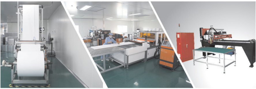 目前,企业配备有行业先进的生产检测设备、高端生产流水线,严格保障每一片产品均达到行业最高品质标准;拥有十万级洁净生产车间,布局高效过滤器生产线9条,年生产能力达40万片;亚高效过滤器年产能100万片,初中效过滤器年产能600万片,可充分满足市场规模化供货需求。