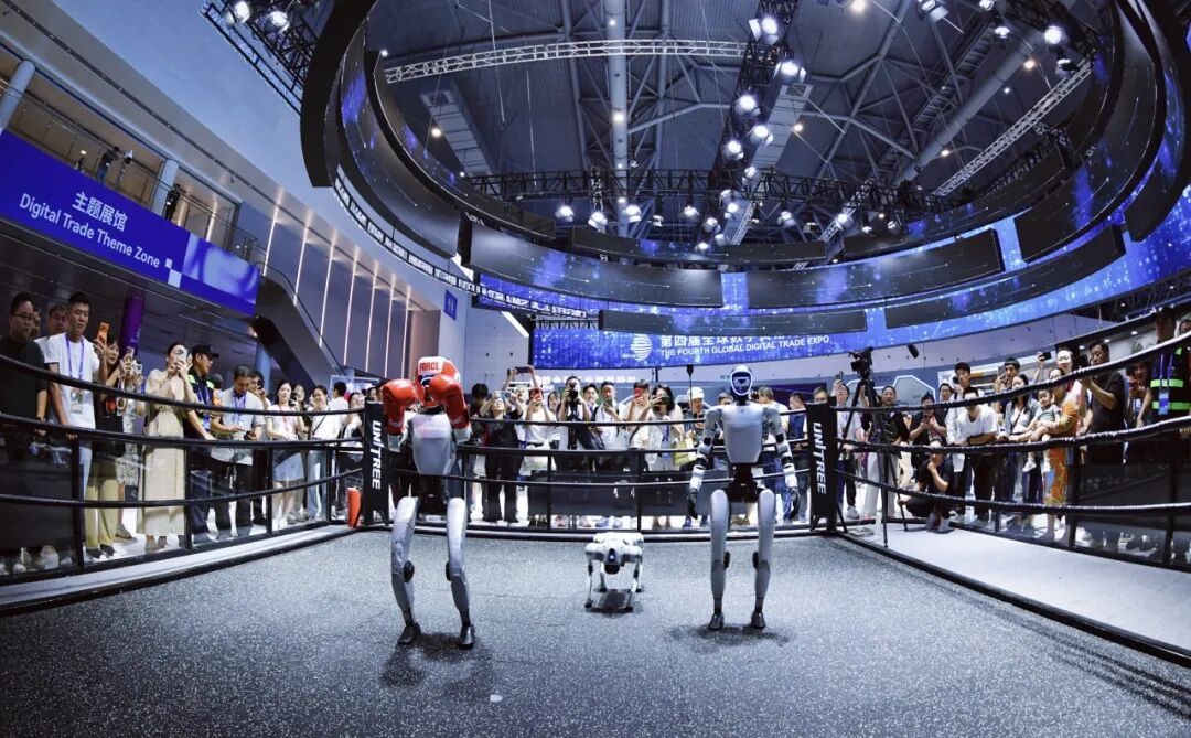 主题展馆作为本届数贸会的重中之重,展示面积达5500平方米,涵盖具身智能机器人等新势力企业,充分展示人工智能赋能数字贸易生态模式及应用场景。在该展馆中,滨江也有多家企业亮相,除了宇树科技以外,还有华诺康科技、阿里巴巴、华为投资等。