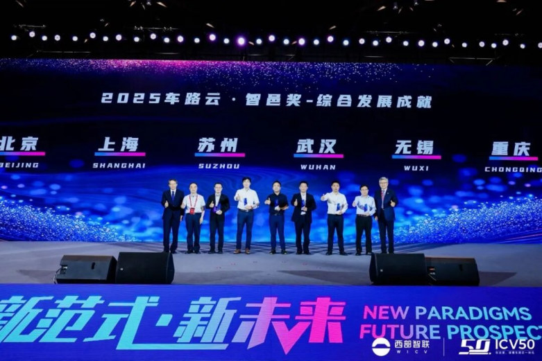 获得“2025车路云·智邑奖”的城市有:北京、上海、苏州、武汉、无锡、重庆。