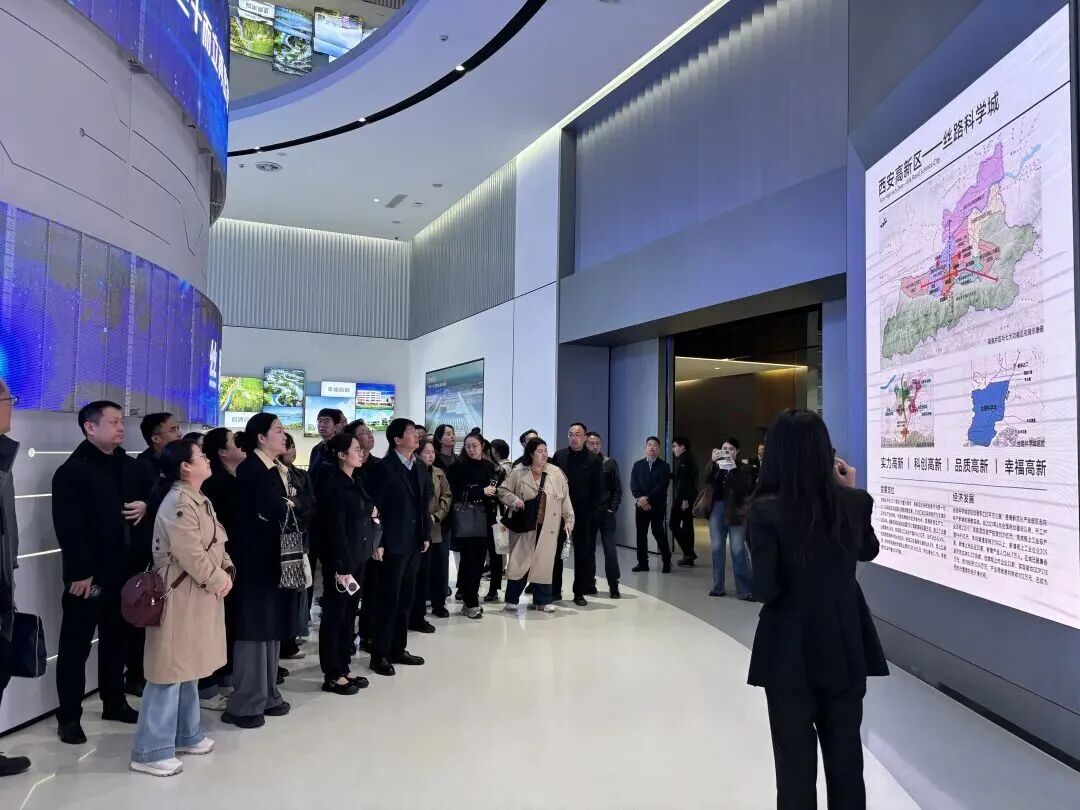 丝路科学城的沃土上,一座蓬勃而生的“科创雨林”正释放出无限生机与活力。企业代表来到丝路科学城规划展示中心,通过沉浸式沙盘、动态影像及图文展板,企业代表们系统了解西安高新区的产业布局、发展历程、重点产业园区建设及未来规划蓝图,亲身感受到丝路科学城是如何用4年时间,实现空间形态的华丽蝶变和发展动能的深刻重塑。