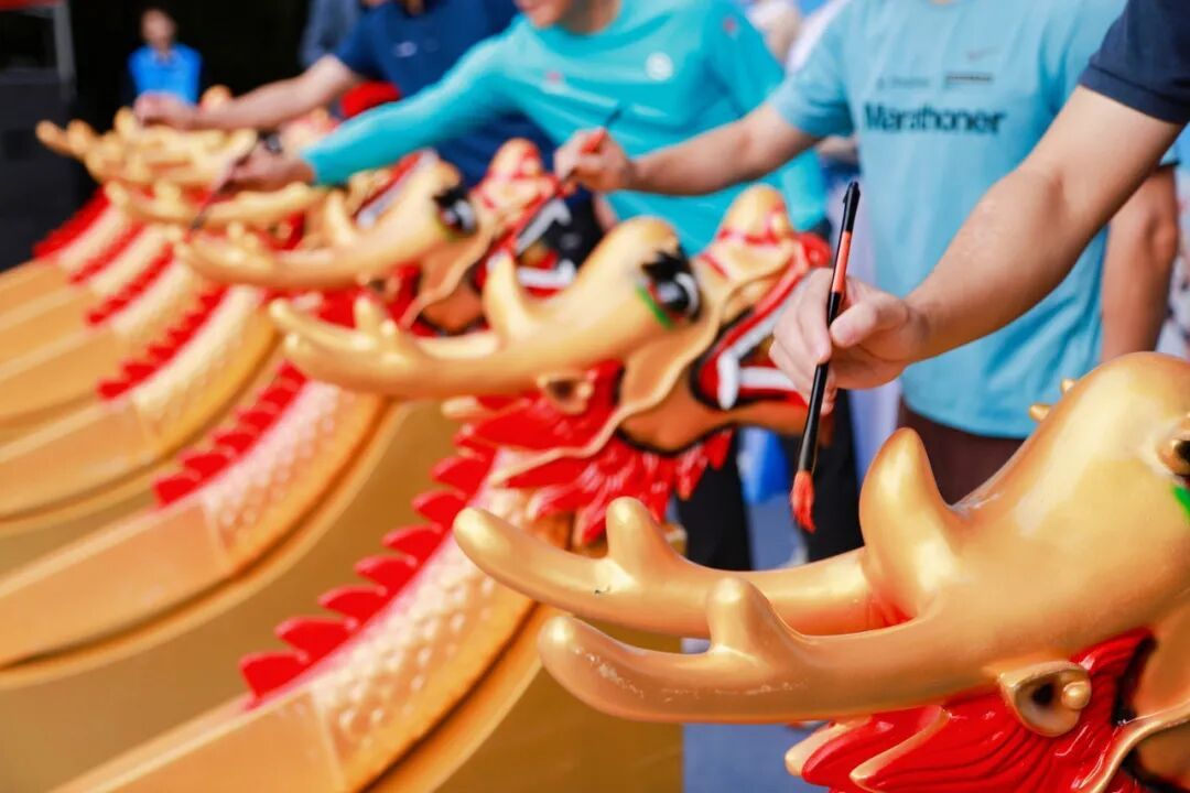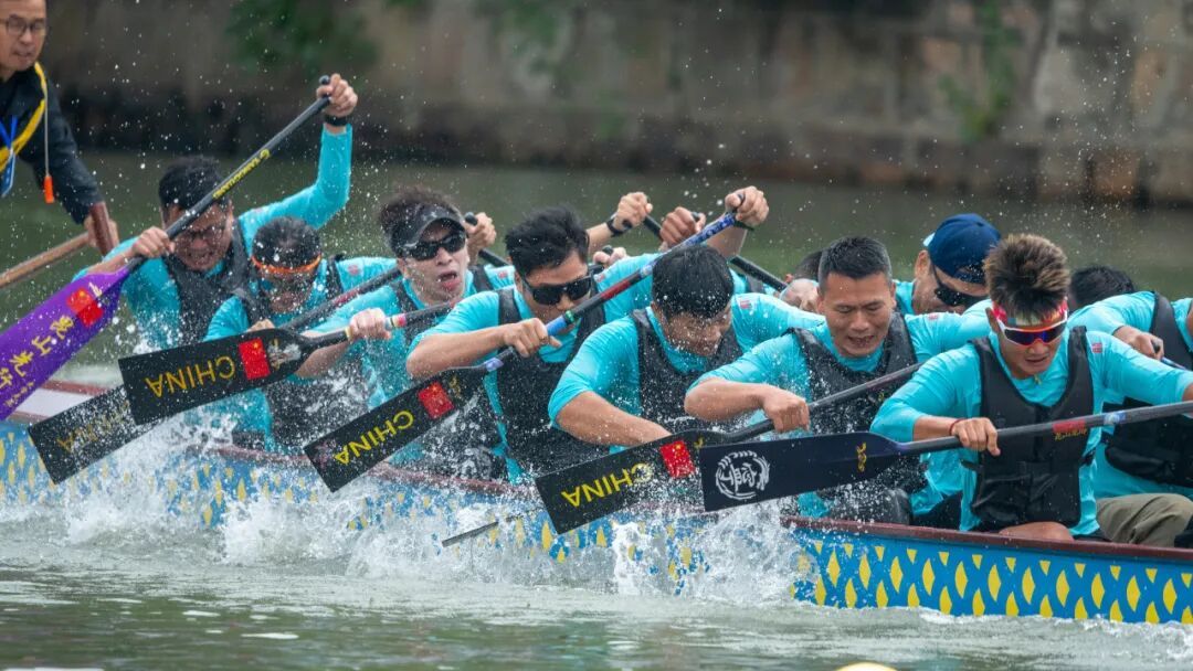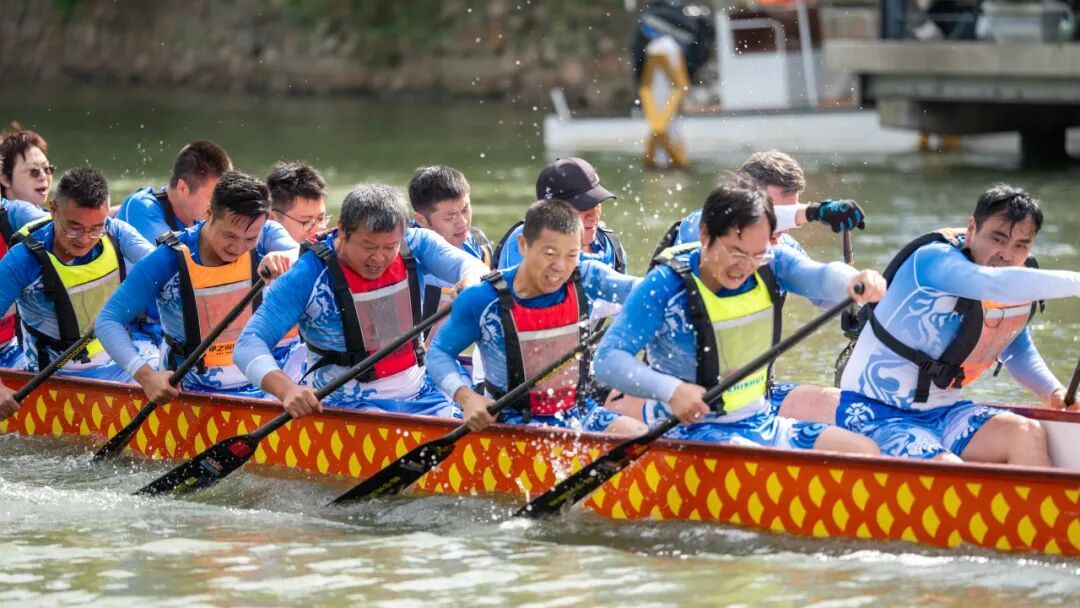 选手们伴随着有力的鼓点,挥桨破浪、齐力奋进。每一次划桨都凝聚着团队的力量,每一声呐喊都迸发着拼搏的精神。300米的赛道上,各代表队你追我赶,上演了一场速度与激情的精彩对决。