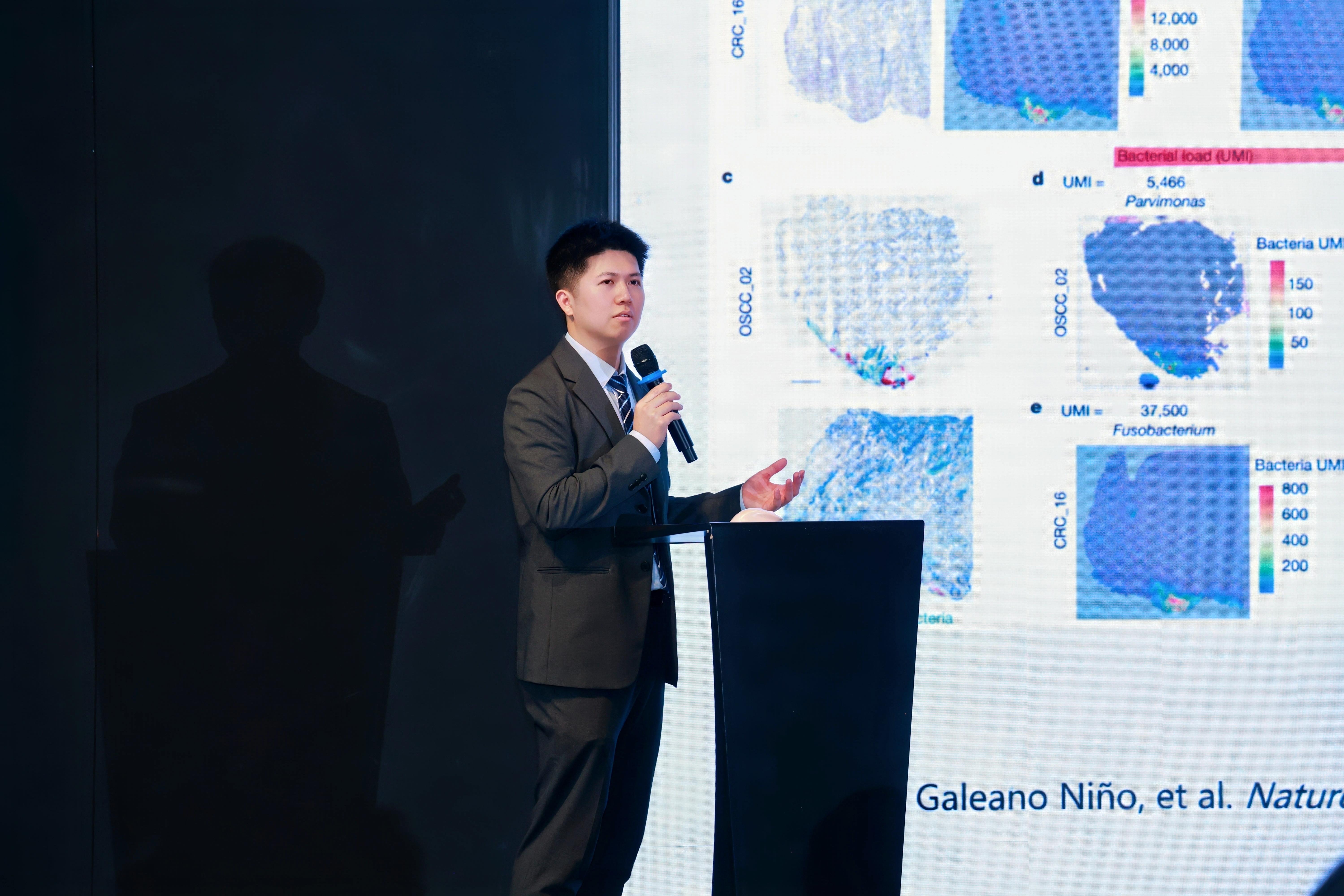 中山大学附属第一医院临床博士后张天豪,则以《瘤内菌:从“旁观”到“共谋”——胃肠肿瘤免疫治疗的新靶点》为主题,系统阐述了肠道菌群与瘤内菌群在定植位置、组成特征和功能机制上的核心差异,揭示了瘤内菌群特别是具核梭杆菌通过调控肿瘤微环境影响免疫治疗疗效的关键机制,为开发基于瘤内菌调控的肿瘤免疫治疗新策略提供了重要思路。