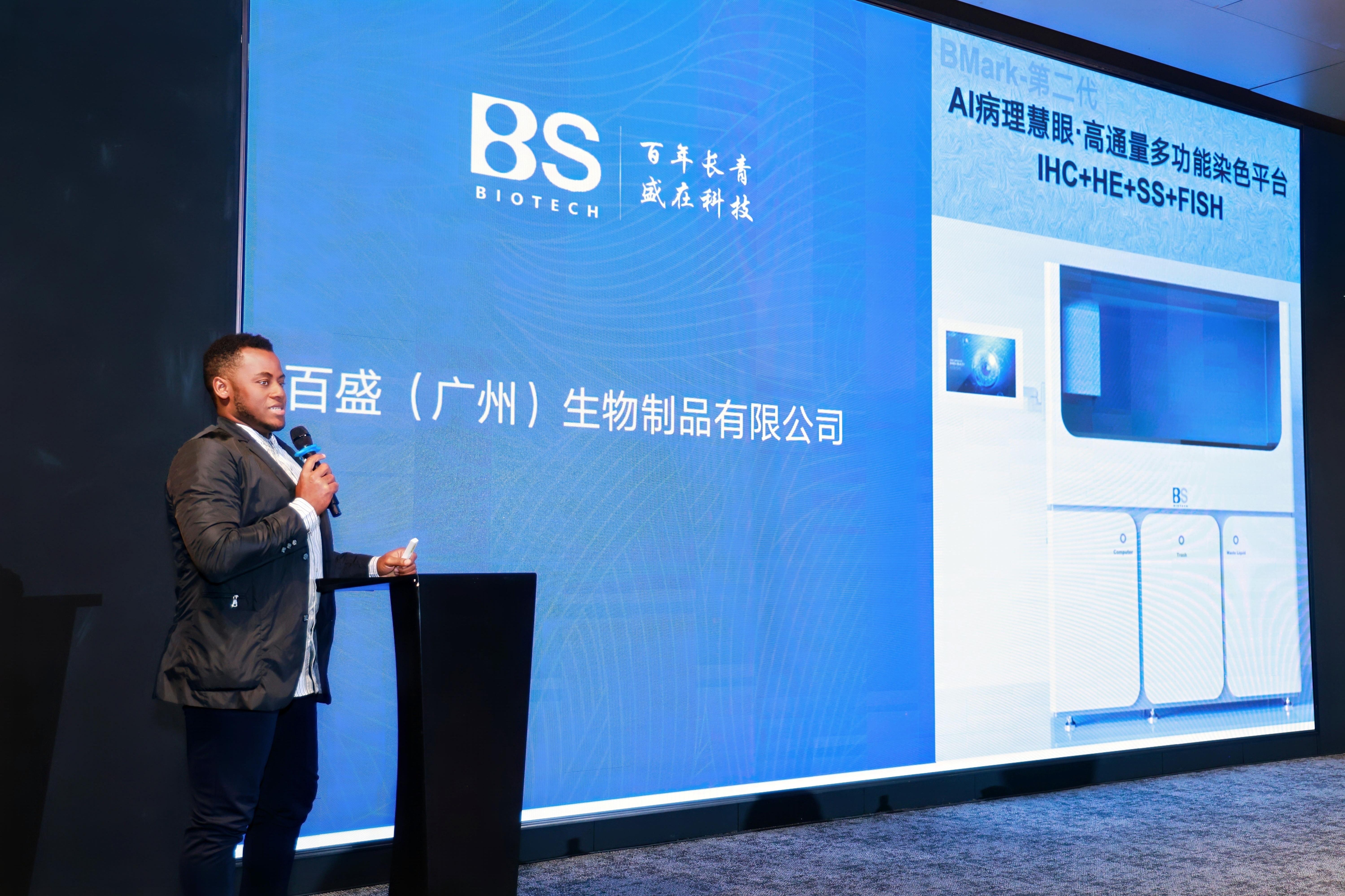 首先百盛(广州)生物制品有限公司研发总监MOBET进行了《Al病理慧眼·高通量多功能染色平台》的分享,展示了公司的“AI病理慧眼·高通量多功能染色平台”,致力于提升病理诊断的效率和精准度。