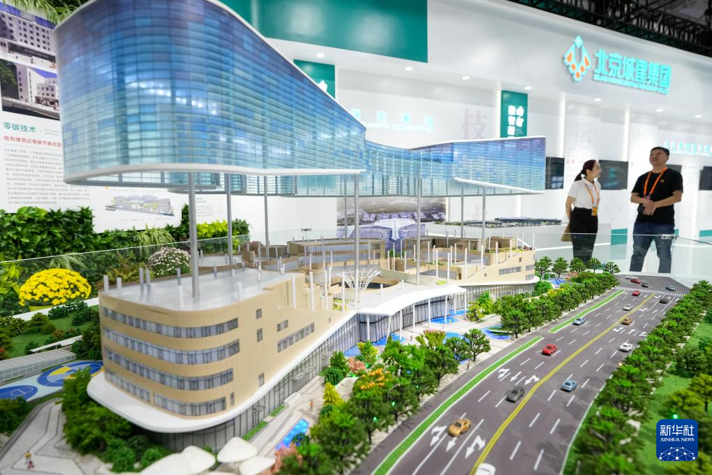 9月14日,参观者在首钢园工程咨询与建筑服务专区北京城建集团展台参观。