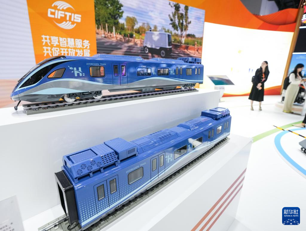 这是9月14日在服贸会国家会议中心综合展区拍摄的氢能源市域列车模型。