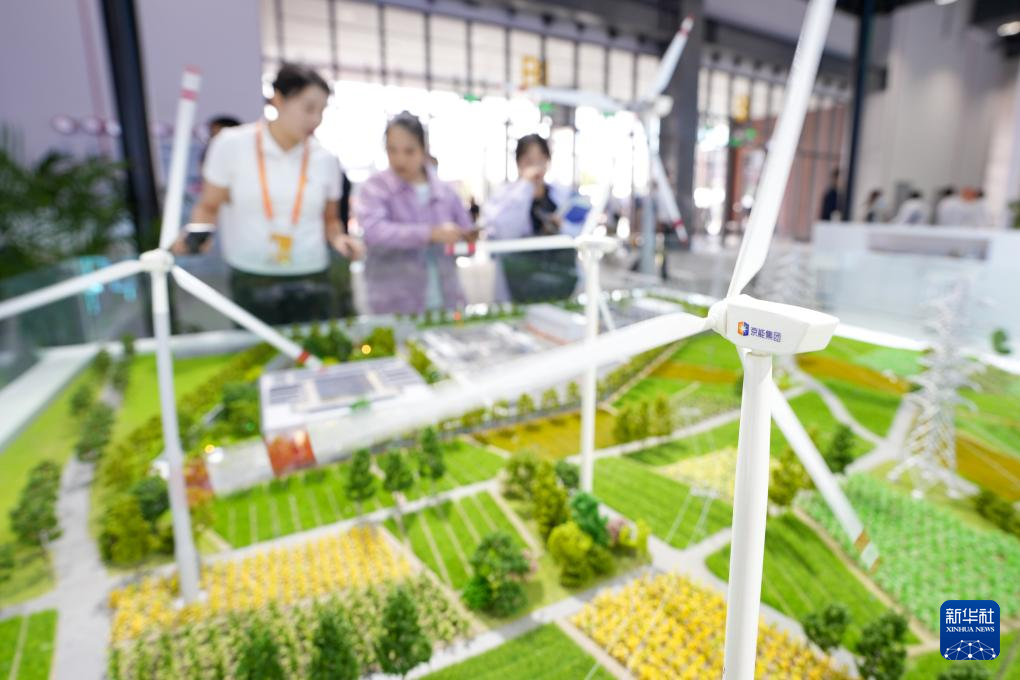 这是9月14日在首钢园环境服务专题展区展出的京能康保450MW风电项目模型。