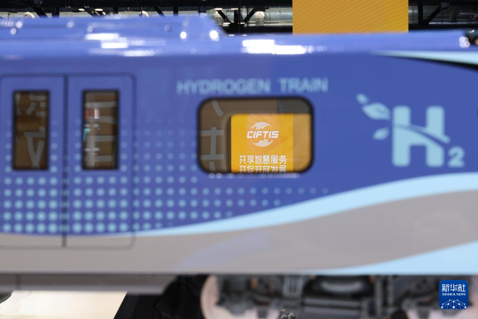 这是9月14日在国家会议中心拍摄的氢能源市域列车模型。