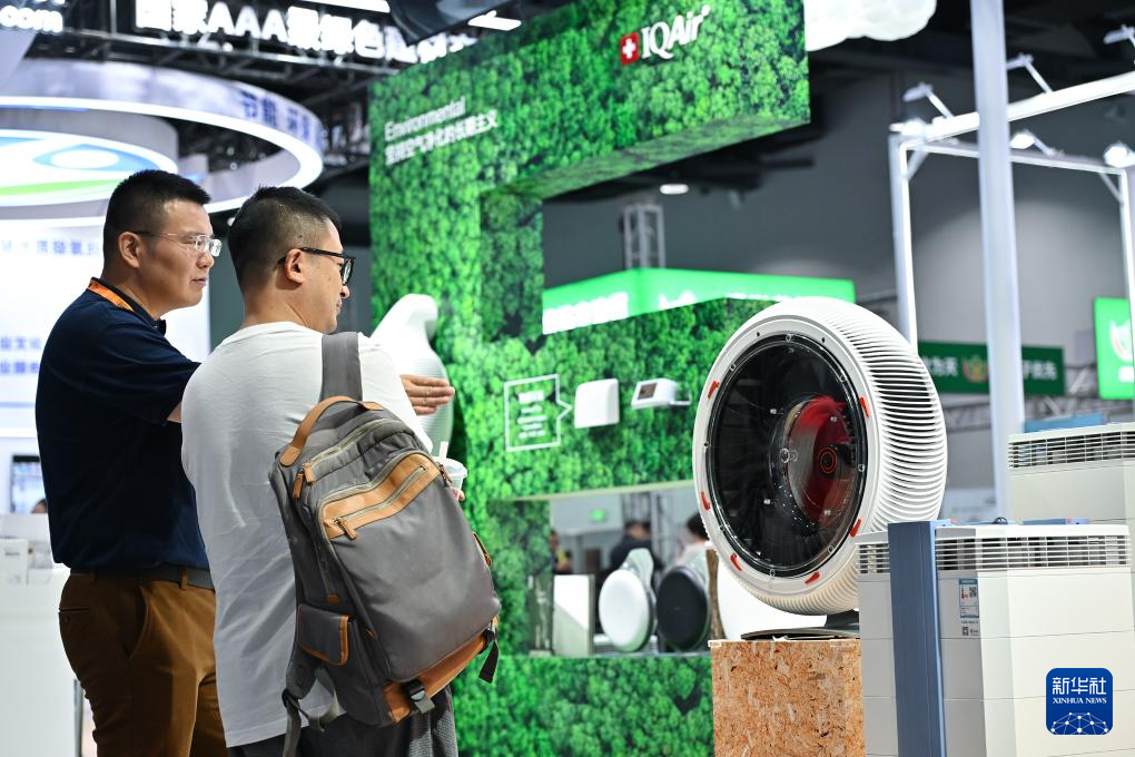9月14日,参观者在服贸会首钢园区的瑞士公司IQAir展台了解空气净化器产品。